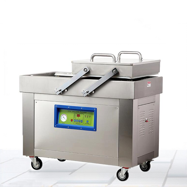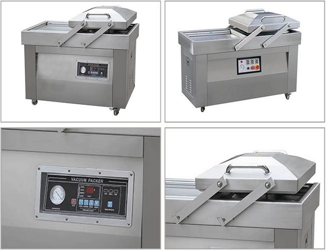 上海工廠生產(chǎn)小型真空包裝機(jī)是有兩個(gè)真空室可以輪換使用,一個(gè)真空室抽真空的時(shí)候,另外一個(gè)真空室可以擺放產(chǎn)品;產(chǎn)品擺放結(jié)束,真空過(guò)程也完成了,所以省略了等待時(shí)間,工作效率是臺(tái)式真空包裝機(jī)的1.5倍,當(dāng)然價(jià)格也高于臺(tái)式真空包裝機(jī)。