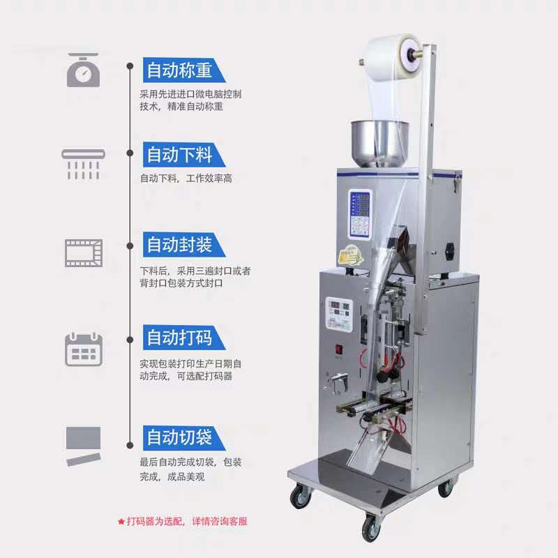 包裝機(jī)采用智能程序進(jìn)行控制袋子長短,小袋長度將根據(jù)色標(biāo)自動進(jìn)行調(diào)節(jié),簡單方便,在市場上受到廣大用戶的認(rèn)可。適合包裝各種食品、藥品、日用品等,是全自動型智能包裝機(jī)械設(shè)備。